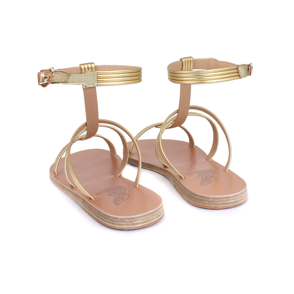 Sandale Frigia signée Ancient Greek Sandals confectionnée en cuir métallisé or. Une coupe de style spartiate modernisée.