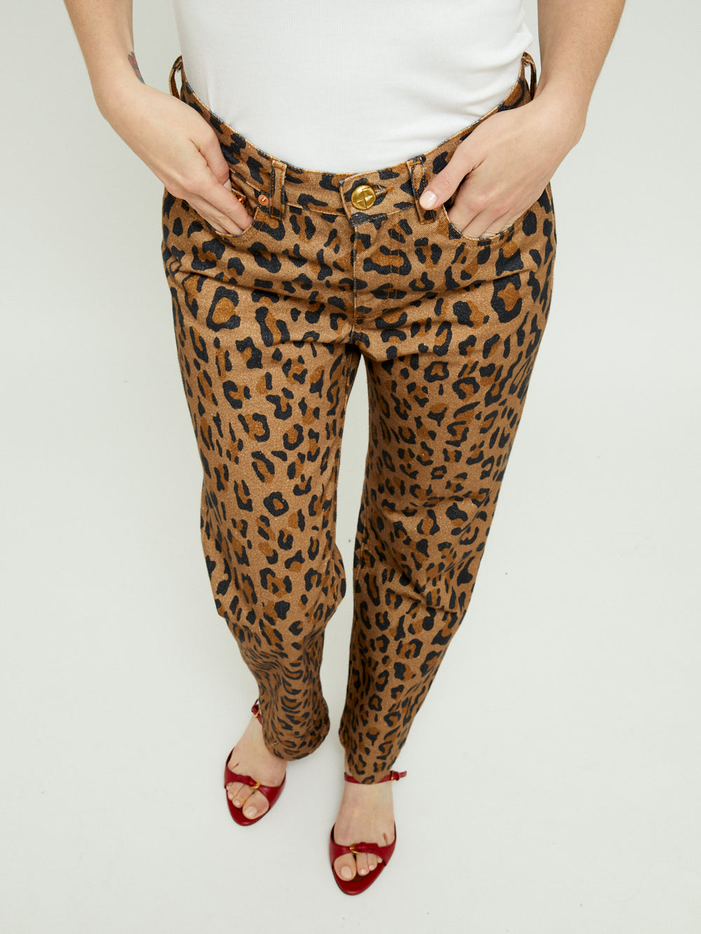 Jean Simba Paso signé Blazé Milano confectionné dans un tissu denim imprimé léopard. Un jean coupe droite à la taille mi-haute.