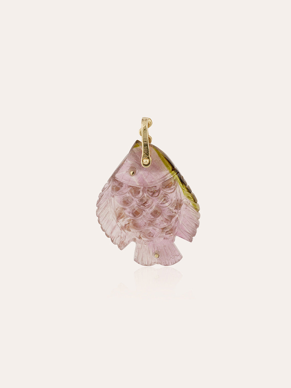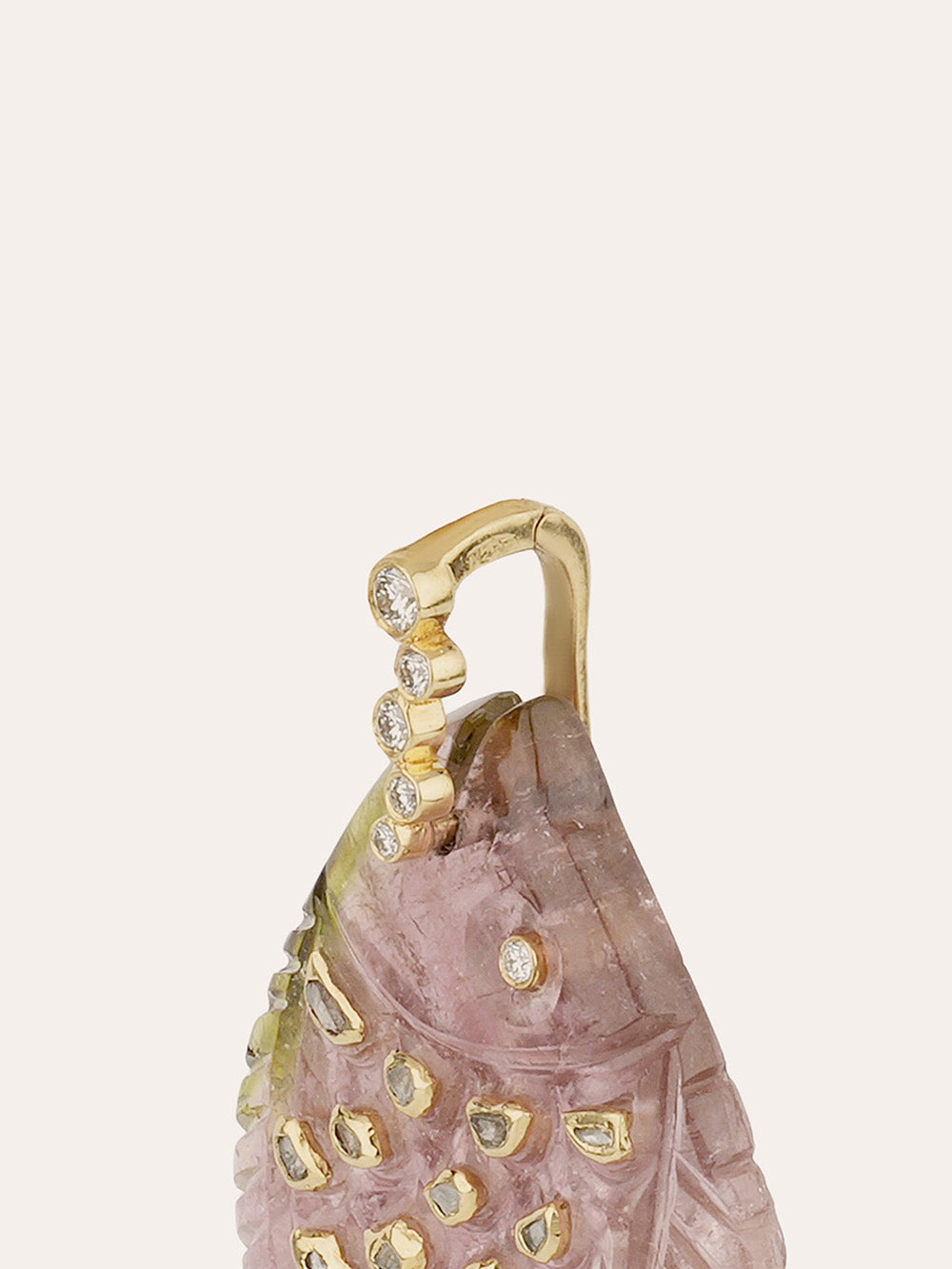 PENDENTIF POISSON TOURMALINE ET DIAMANTS POLKI