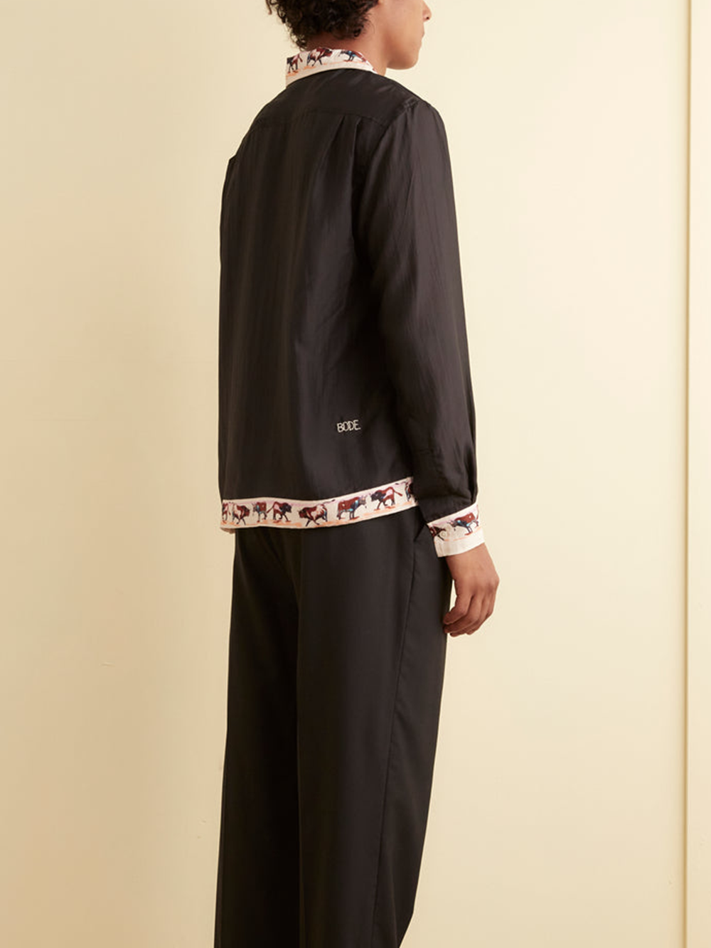 Cette chemise Taureau signée Bode s'inspire d'un foulard souvenir espagnol du milieu du siècle dernier, qui comportait un imprimé de taureau.