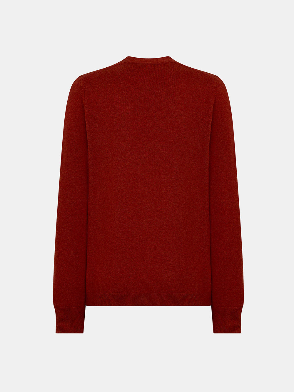 Cardigan Highland Marsala signé Blazé Milano confectionné dans un mélange de laine et de cachemire rouge brique. Un cardigan au col en V accompagné des poches archées signatures.