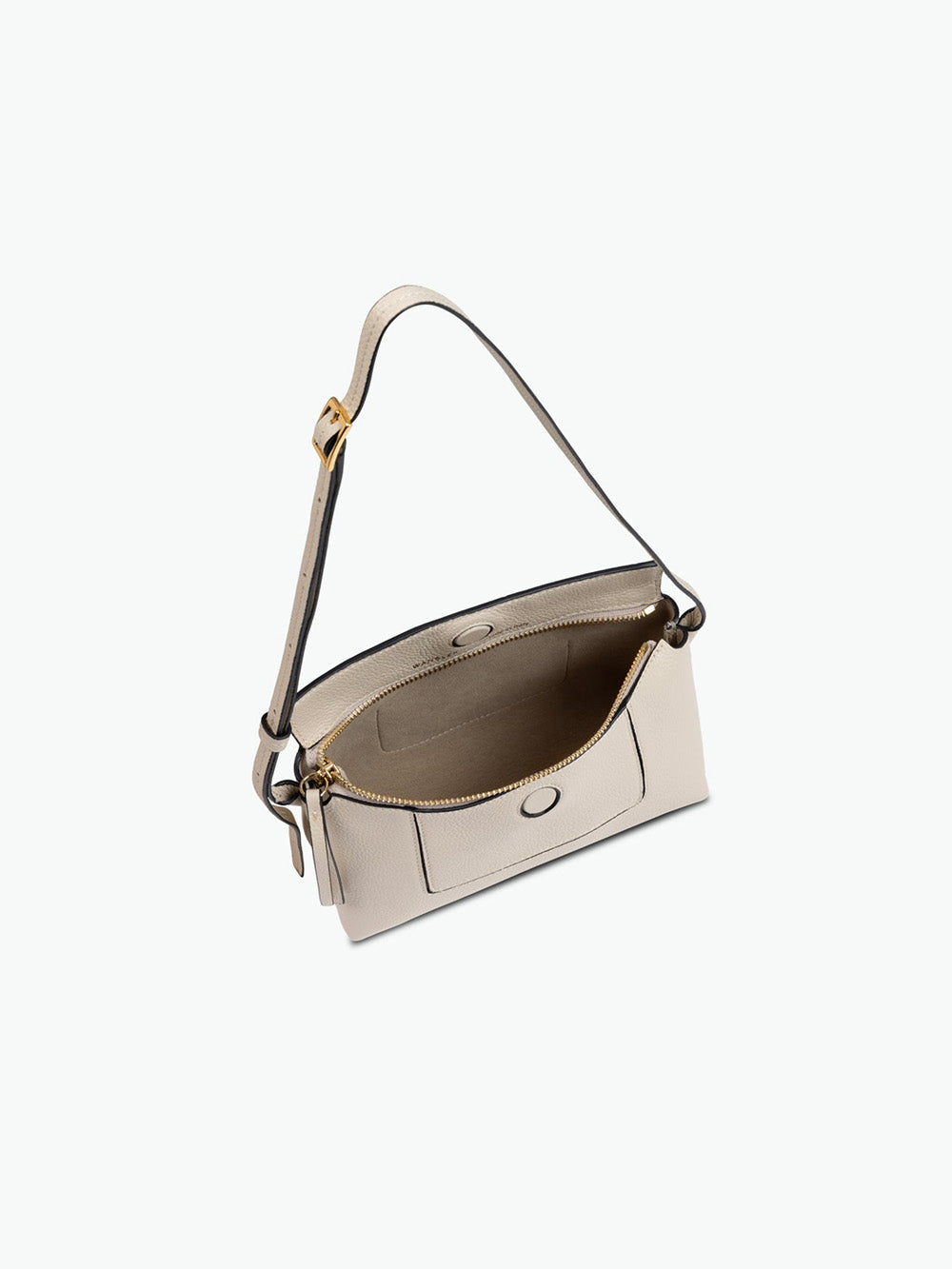 Sac Penelope Slouch Mini signé Wandler confectionné dans un cuir de veau grainé de couleur beige. Un sac pouvant se porter en bandoulière, à l'épaule ou à la main grâce à une sangle ajustable.