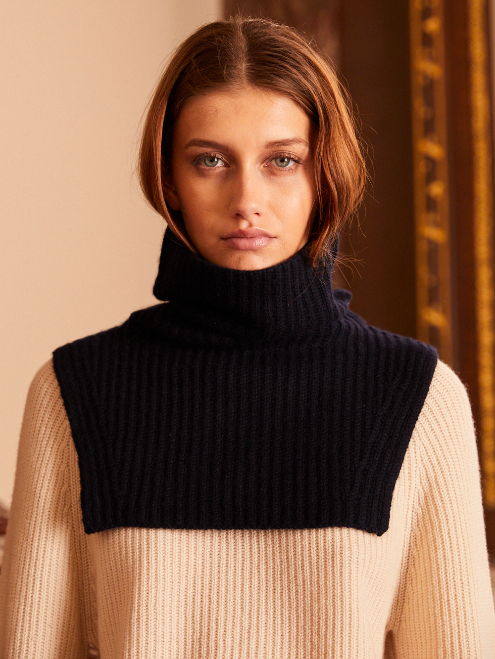 Col Grace BY MARIE Collection. Ce col en cachemire et laine peut se porter sous vos pulls ou vos manteaux. Une plaque dorée embossée du logo BY MARIE est cousue au dos du col.