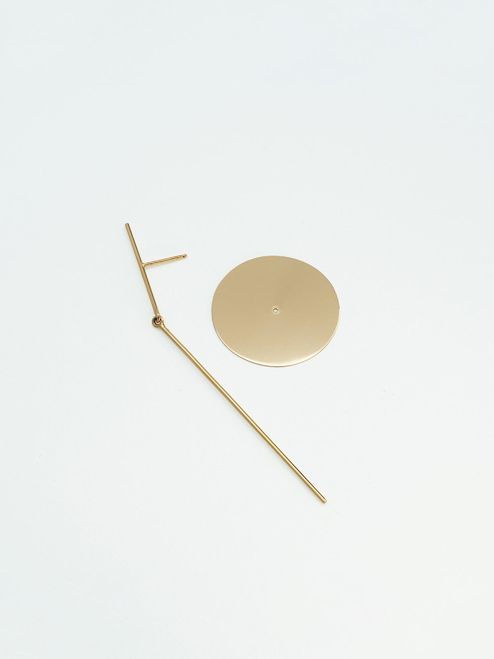 Boucle d'Oreille Stock & Cercle signée Kathleen Whitaker confectionnée en or jaune 14 carats. Une boucle d'oreille moderne de la collection modulable de la créatrice.