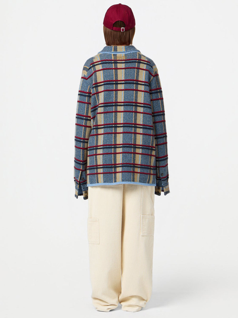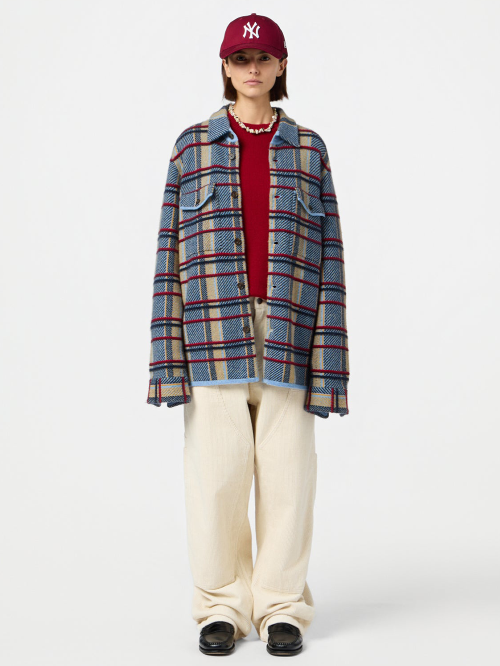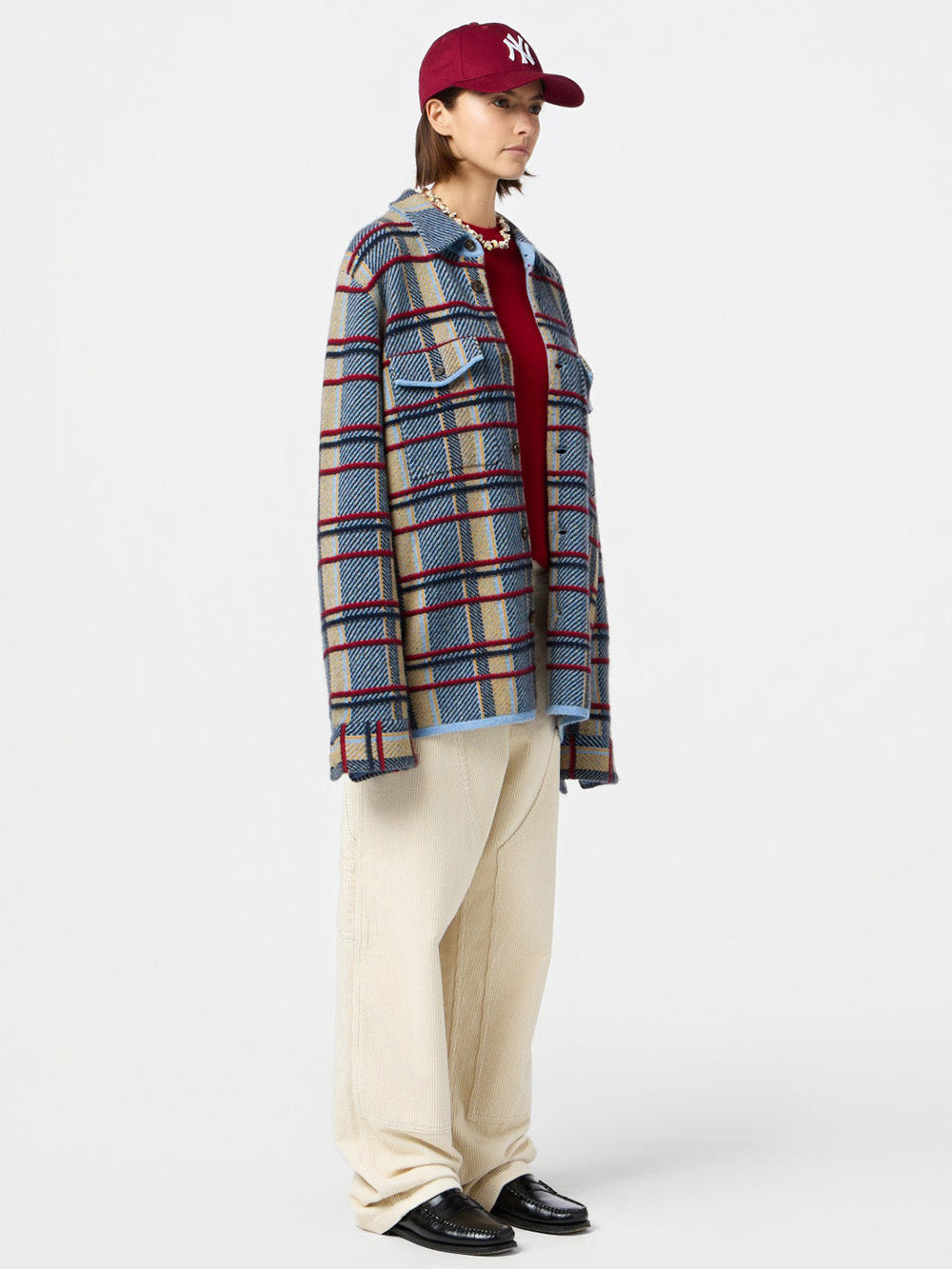 Chemise Plaid Work signée Guest In Residence confectionnée en cachemire dans les tons bordeaux, bleu et beige. Une chemise de style bûcheron à la coupe oversized.