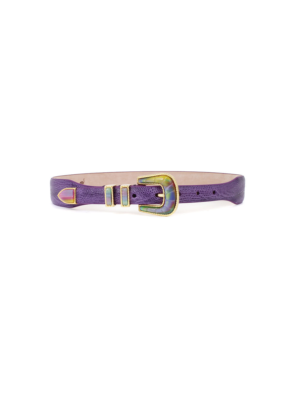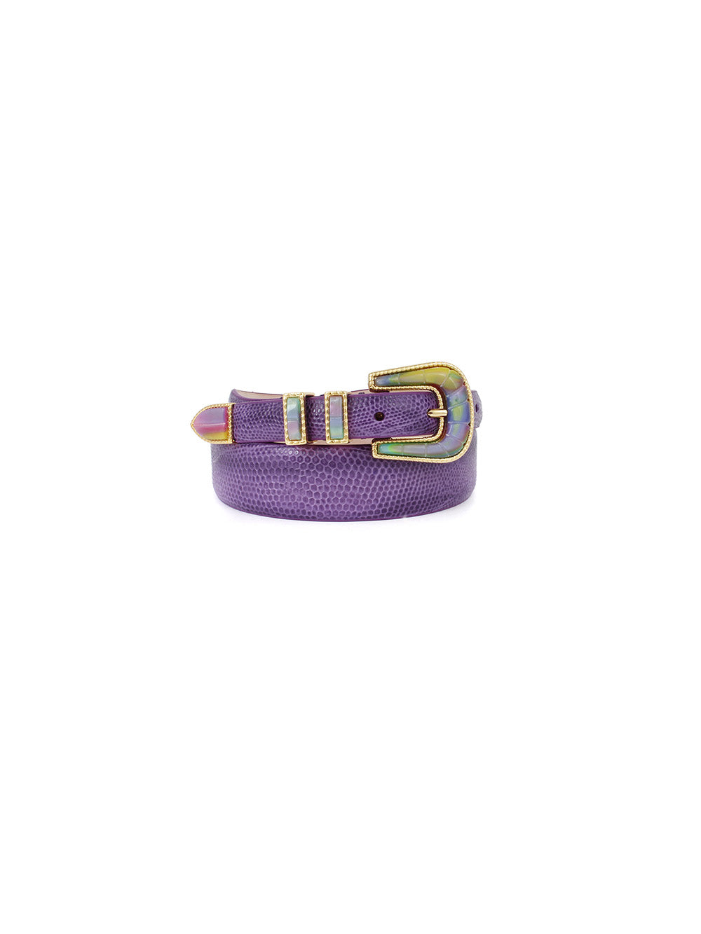 CEINTURE EXCLU CRAZY LEZARD VIOLET ET OR