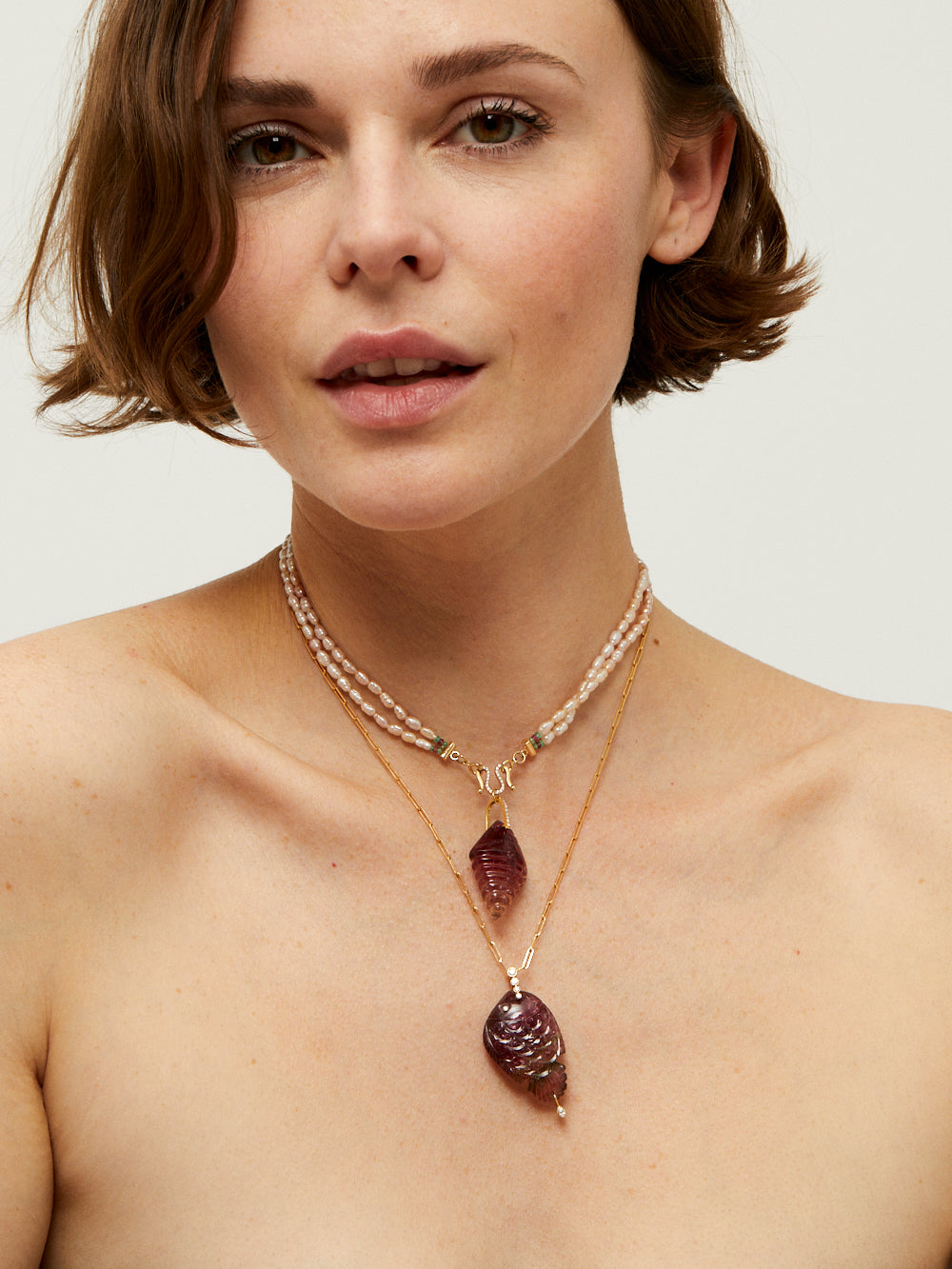 - La chaîne, le collier de perles et le pendentif coquillage sont vendus séparement