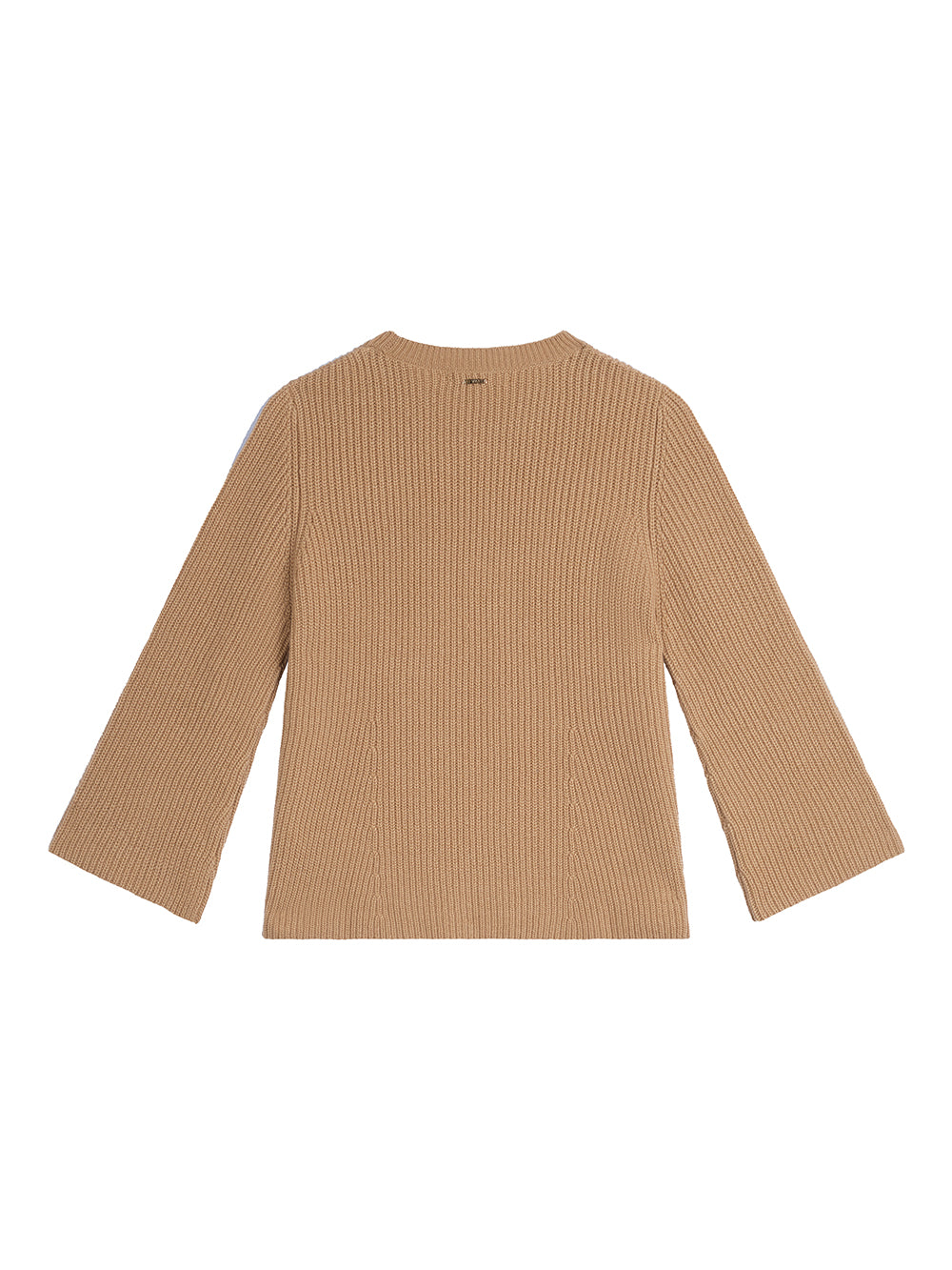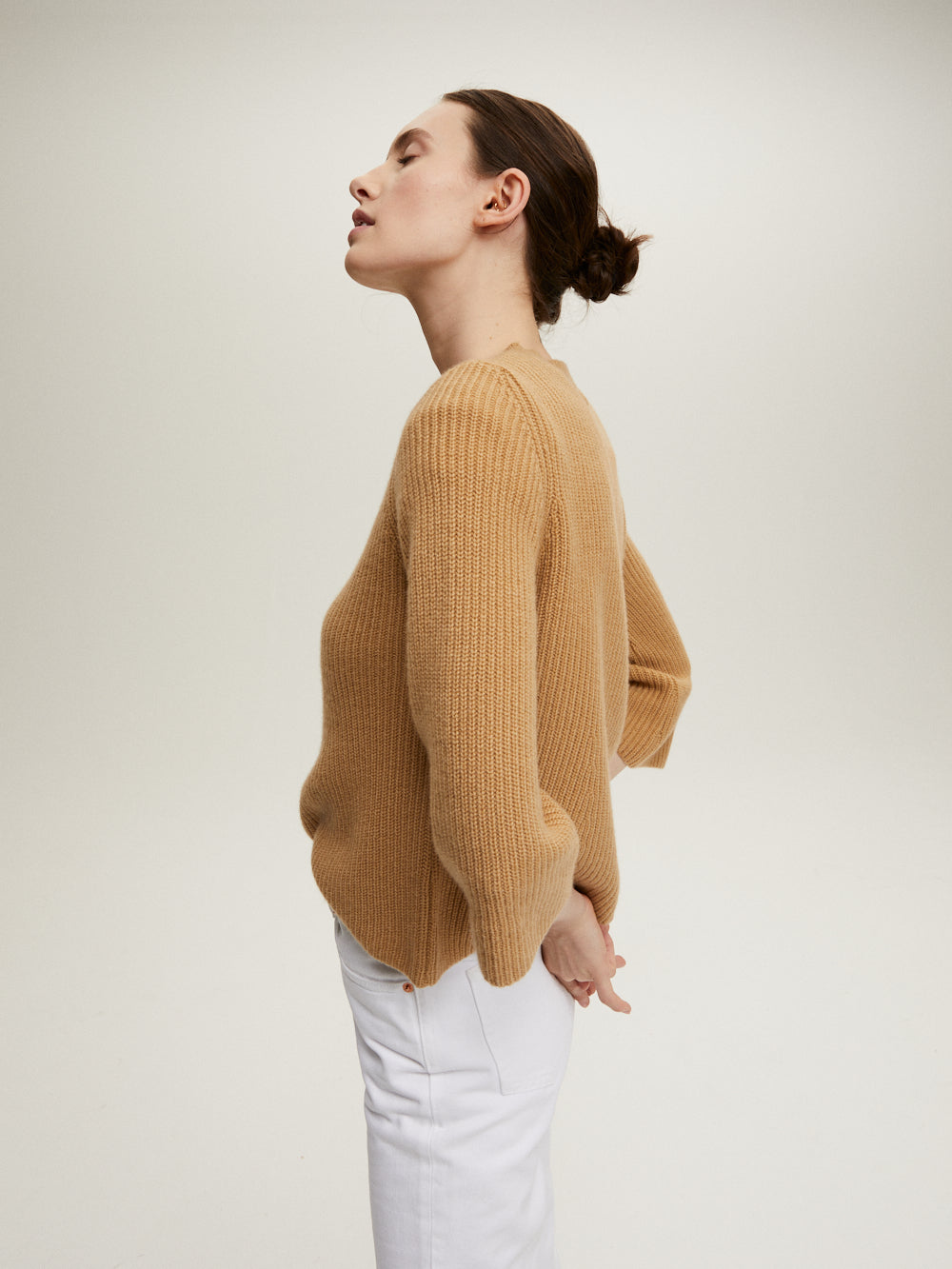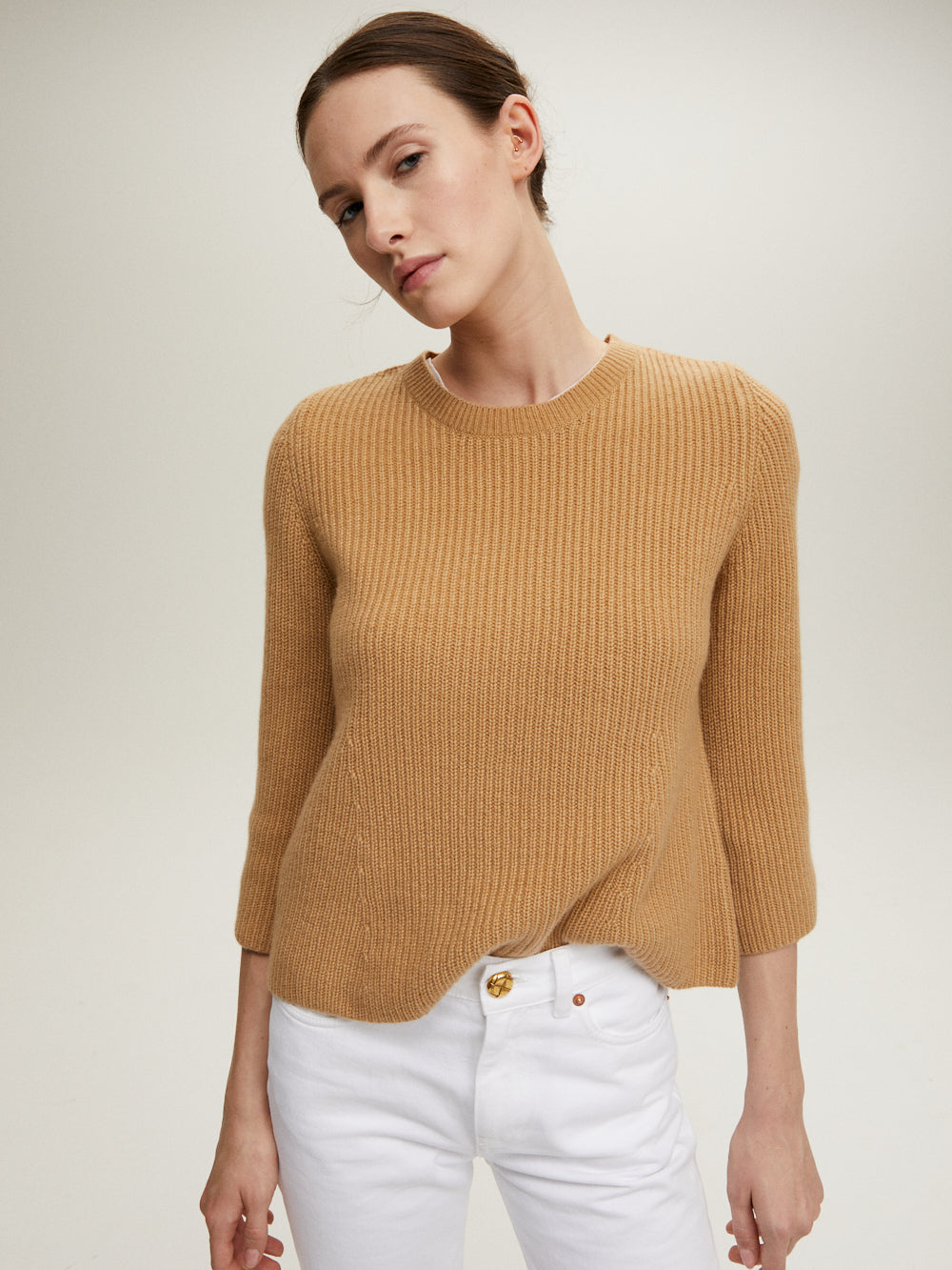 Pull Flare signé BY MARIE Collection confectionné en 100% cachemire de couleur camel. Les cachemires BY MARIE sont réalisés en série limitée à la main et à l’aide d’une machine à tricot ancienne dans une organisation au Népal qui existe depuis 20 ans. Cette entreprise est composée essentiellement de femmes et comme nous, a à coeur la transmission d’un savoir faire de qualité.