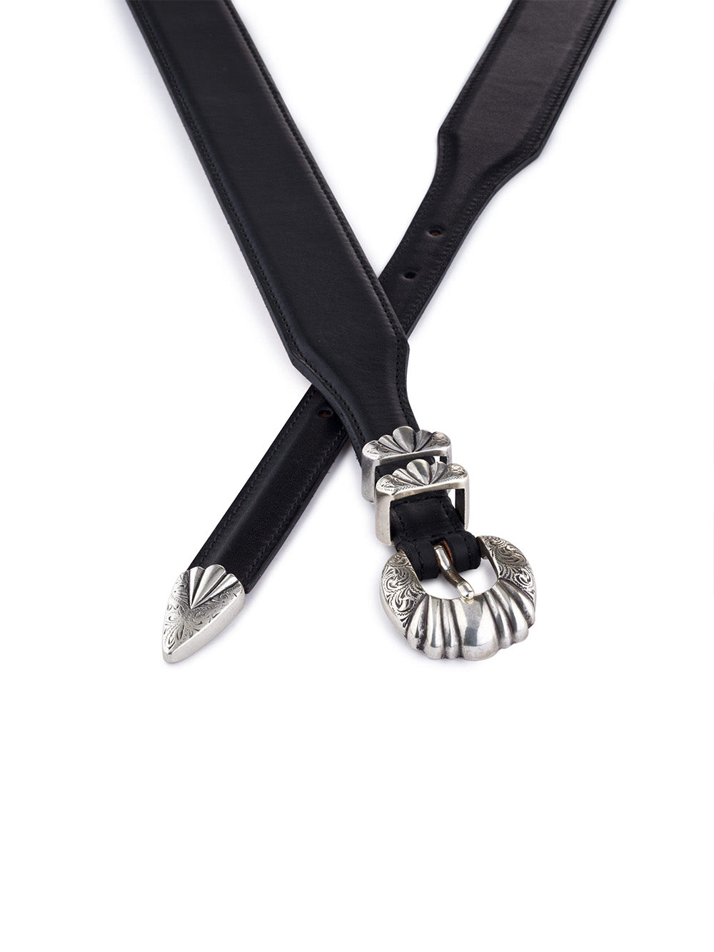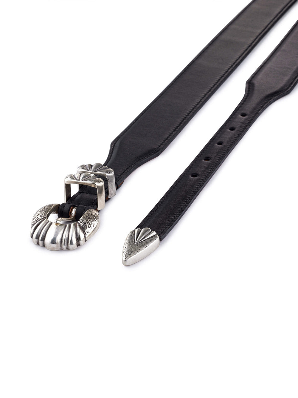 Ceinture Versailles Black Silver Ostrich entièrement fabriquée à la main en Italie.