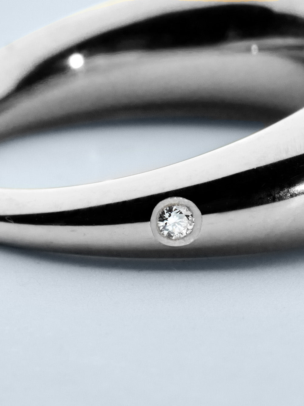 Bague Eduardo Mediano signée Luminous 27 confectionnée en argent 925 plaqué de rhodium et décorée d'un diamant taille brillant sur le côté. Un design bombé moderne et intemporel.