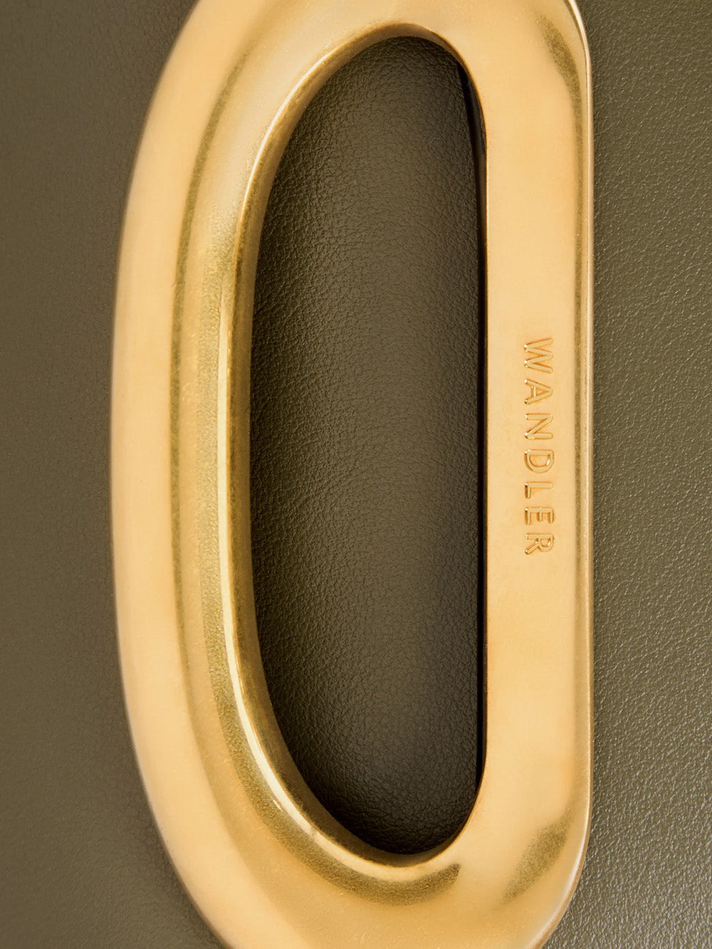 Sac Veneto Crossbody Small signé Wandler confectionné en cuir grainé vert olive. Un petit sac à rabat décoré d'une boucle oversized dorée. Doublure en canvas de coton crème et compartiment à cartes.